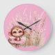 A charming little monkey is dressed as a ballerina, wearing a pink tutu and a matching headband. She stands gracefully in front of tall grass and delicate, tiny flowers.