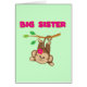 A cute monkey with a pink flower swings by her tail from a branch and pink text reads "Big Sister" on big sister T-shirts, key chains, cards, stickers, tote bags, magnets, mousepads, pillows, and other big sister apparel and gifts!