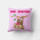 A cute monkey with a pink flower swings by her tail from a branch and pink text reads "Big Sister" on big sister T-shirts, key chains, cards, stickers, tote bags, magnets, mousepads, pillows, and other big sister apparel and gifts!