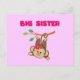 A cute monkey with a pink flower swings by her tail from a branch and pink text reads "Big Sister" on big sister T-shirts, key chains, cards, stickers, tote bags, magnets, mousepads, pillows, and other big sister apparel and gifts!