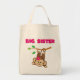 A cute monkey with a pink flower swings by her tail from a branch and pink text reads "Big Sister" on big sister T-shirts, key chains, cards, stickers, tote bags, magnets, mousepads, pillows, and other big sister apparel and gifts!