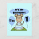 Babies who love monkeys will love this blue Monkey Birthday Boy 1st birthday design on t-shirts, bodysuits, cards, stickers, tote bags, and more! Features a monkey with a blue and white frosted birthday cake, blue balloons, and text that reads "It's My Birthday I'm 1!".