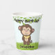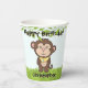 Silly Monkey Paper Cups will go perfectly with the other cute little monkey birthday items in the collection. Green leaves surround the cup with the words Happy Birthday woven in front and behind.