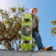 Cool, cute kids happy cartoon brown monkey swinging from vine on bright green camo, camouflage pattern. Great jungle, zoo animal theme kid's product!