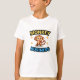 The t-shirt feels and looks great quality, a good thick cotton. It will be a little big for my son, but that means he will be able to wear it and not out grow it too soon. The print was as described on the order when personalised. True size, shape and colour T-shirt- thanks.