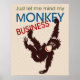 A funny design of a monkey hanging from a colourful slogan: "Just let me mind my monkey business". A funny invite to anyone around to let you be who you really are.