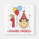 First birthday fun "I'm 1" with cool monkey face, large number 1 and colourful balloons. If you love jungle, safari and zoo animals you'll love this monkey in a birthday hat.