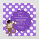 So very cute Kindergarten Graduation featuring an adorable little monkey in a cap holding a diploma set on a purple & white polka dot background. Personalise with your party information and you're all set to go! Matching thank you notes, stickers & postage available in our shop at www.celebrateitinvites.com ©Cocoa Studio