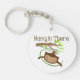 A cute monkey swings from a branch by his tail and brown text reads Hang In There, a cute monkey design great for kids and adults who love animals, especially monkeys! Monkey Hang in There T-shirts, mugs, bodysuits, blankets, bibs, burp cloths, magnets, stickers, bags, cards, stickers, key chains, keepsakes, and much more!