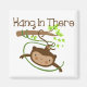 A cute monkey swings from a branch by his tail and brown text reads Hang In There, a cute monkey design great for kids and adults who love animals, especially monkeys! Monkey Hang in There T-shirts, mugs, bodysuits, blankets, bibs, burp cloths, magnets, stickers, bags, cards, stickers, key chains, keepsakes, and much more!
