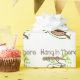 A cute monkey swings from a branch by his tail and brown text reads Hang In There, a cute monkey design great for kids and adults who love animals, especially monkeys! Monkey Hang in There T-shirts, mugs, bodysuits, blankets, bibs, burp cloths, magnets, stickers, bags, cards, stickers, key chains, keepsakes, and much more!