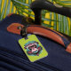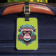 A monkey portrait illustration on a vivid green background. Great for frequent travelers who have hard time to identify their luggage(s).