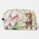 This toiletry bag design features a monkey holding tropical orchid with a woven pattern background. You can personalise with a name.