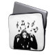 The sleeve is made of nice feeling material and seems very durable. I'm not sure how easy it'll be to clean, but the construction seems sound and the fabric is quick thick. I also like the double zipper. The printing is lovely and appears durable. The white on black contrast is nice, and the design very elegant.