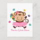 Little sister design features a cute little girl monkey dressed in a pink tutu. She holding a bouquet of flowers. Text says I'M THE LITTLE SISTER. On T-shirts and gifts. PinkInkArt original!
