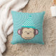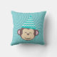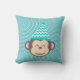 Monkey on Blue Diagonal Stripe Throw Pillow