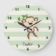Cool, colourful kid's brown monkey swinging from green vine, jungle, safari, zoo animal theme design on pastel mint green and off white stripes pattern. Perfect gift for baby, toddler, kids, children, teens, or adults! Personalised the design by adding a child's name or custom text. Visit our store, Birthday Party House, for more great customisable boy and girl products!