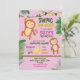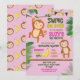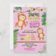 Monkey Party Birthday Swing Over Girl Pink Invitation