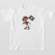 The t-shirt feels and looks great quality, a good thick cotton. It will be a little big for my son, but that means he will be able to wear it and not out grow it too soon. The print was as described on the order when personalised. True size, shape and colour T-shirt- thanks.