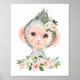Monkey, Safari, Jungle, Pink Flowers, Girl Nursery Poster