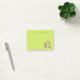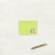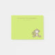 A small sized set of sticky notes with a cute illustration of a brown monkey sitting down. She has pink blushing cheeks for additional kawaii cuteness. texture. Fun and whimsical design. Personalise with a name or other text. Set on a lime green background.