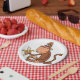 A mionkey sitting holding a banana ready to eat. This design looks really effective on this Paper Plates
