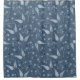 Monochromatic Blue-Grey Leafs & Berries Pattern Shower Curtain