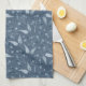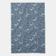 Monochromatic Blue-Grey Leafs & Berries Pattern Tea Towel