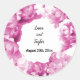 Beautiful mixed wedding wreath bouquet flowers in monochromatic pink accent this personalised wedding sticker.