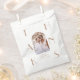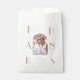 Elegant neutral thank you wedding favour bag. This modern design features an arch shaped photo and big typography.
