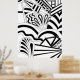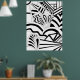 A black and white abstract pattern design with an art deco style. A stylish design with a retro look. This image has grey lines with black and white shapes.