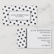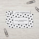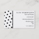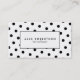 A simple and classic monochrome business card featuring a white box outlined in black in the center for your name and profession. The background is a polka dot design with black dots on a white background. The design is repeated on the back with more space for your details.