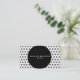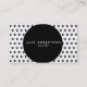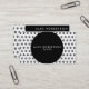 A professional design featuring a simple pattern of black paw prints on a white background with a large black circle in the middle for your name and profession. This would be suitable for anyone who works with pets or animals including vets, pet groomers, dog walkers and pet sitters.