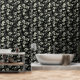 This peel-and-stick wallpaper features a sophisticated black background adorned with an intricate, monochromatic leaf pattern. The detailed leaf designs create a timeless, nature-inspired aesthetic, making it perfect for accent walls, furniture upgrades, or home decor projects. Its self-adhesive backing ensures easy application and removal without damaging surfaces, making it an ideal choice for renters or those seeking a stylish, yet temporary decor solution. The bold contrast between the black backdrop and the white leaves adds a modern yet classic charm to any interior space.