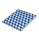 This modern ceramic tile features an isometric pattern in customisable blue and white hues with thin black lines.