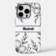 This premium mobile device protector features an elegant monochrome botanical line art design. Intricate hand-drawn flowers, leaves, and stems are rendered in crisp black outlines on a pristine white background, creating a classic and sophisticated patterned aesthetic. Personalise this unique smartphone accessory with a name like "Elizabeth" on the modern grey customisation bar; you can easily remove the name and any other elements you don't like from within the design tool, crafting your perfect bespoke mobile phone protector.