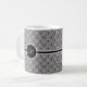 Monogram Celtic Knot Pattern Coffee Mug. Novel version of a Celtic knot, twisted and tangled in a repeating pattern in black and white. With a black and white horizontal band and circle containing your customisable monogram. Easily change to your own letter using the Personalise link.