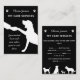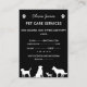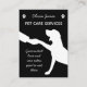 A monochrome black and white business card. Perfect for a pet care service, dog walker, pet sitter or doggy day care. On a black background, the front of the card contains a white silhouette outline image of a hand holding a dog paw. The business owner name and service is written alongside two white paw prints, and the slogan Guaranteed love and care when you're not there. Personalise by adding your business and contact details to the back that is also decorated with white outline images of a beagle, chihuahua, Labrador and German shepherd.
