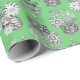 Monochrome Flowers on Green Background Giftwrap Wrapping Paper
