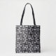 Modern, minimal, and unmistakably cool — this black and white tote bag showcases a crisp geometric grid pattern with bold circular and linear elements. The optical design delivers a sleek, architectural feel perfect for urban explorers, artists, and anyone with a sharp eye for style. Functional meets fashionable in this everyday essential.