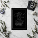 This minimalist black wedding rehearsal dinner invitation features a bold black background with elegant white script and refined serif typography. A thin border adds a timeless touch, creating a sophisticated and modern design. Perfect for formal, classic, or contemporary wedding celebrations, this chic monochrome invite seamlessly coordinates with the Minimalist Black and White Wedding collection. Easily personalise with your rehearsal dinner details for a polished and stylish announcement.