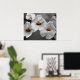 Beautiful white orchids with vibrant yellow and red centre converted to black and white with the centre colours painted back in. One of a kind photo poster. Available in different sizes and papers. Photo by T.Dashfield