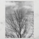 A monochrome image of Autumn tree tops against a cloudy sky.