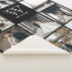 This modern monogrammed blanket features 11 photos a spot for a name and 2 line borders.
