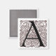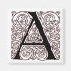 This capital letter 'A' is surrounded by elaborate dark, red swirls that look like flower vines.