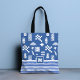 Monogram Abstract Geometric Bird Floral Blue Tote Bag