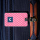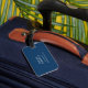 Travel in style with this monogram luggage tag featuring an abstract pink line strokes pattern with a blue centre on the front and a matching blue back side.
