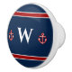 Monogram Anchor Nautical Red White Blue Stripes Ceramic Knob