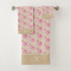 Monogram and Beautiful Pink Flowers on Light Beige Bath Towel Set