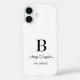 The Monogram and Name Heart iPhone 16 Case is a stylish, personalised accessory designed to protect your phone while adding a touch of elegance. This case features a unique heart design centred around your monogram and name, creating a sleek, customised look. Ideal for showcasing your individuality, the case is durable and crafted to fit the iPhone 16 perfectly. The blend of high-quality materials and the personalised monogram design makes it a thoughtful gift for yourself or loved ones.